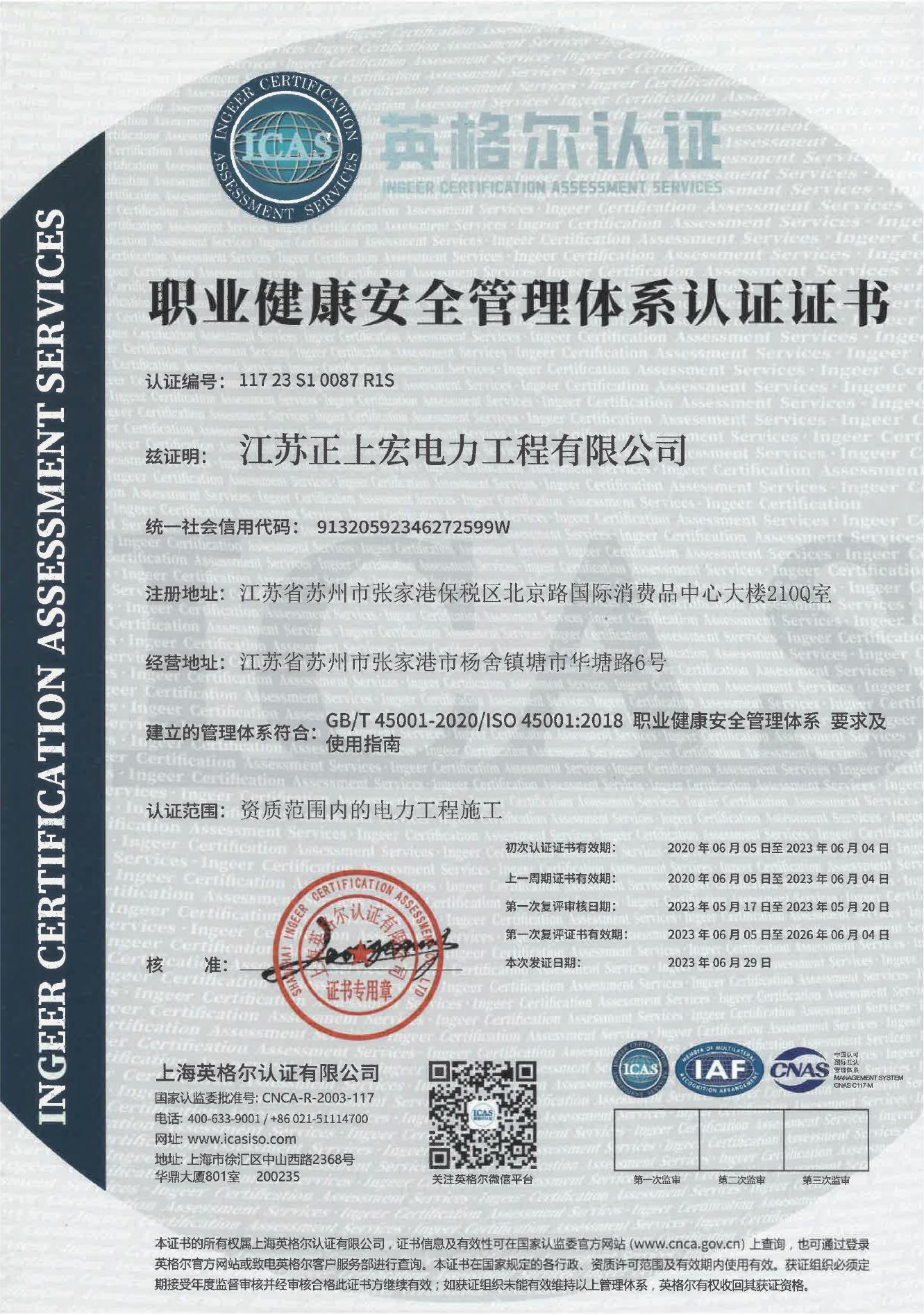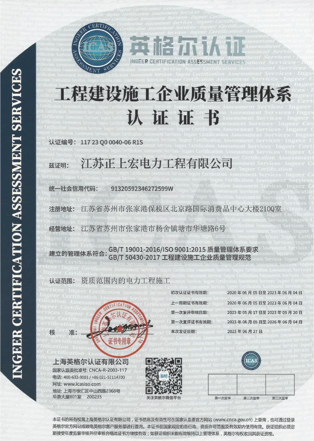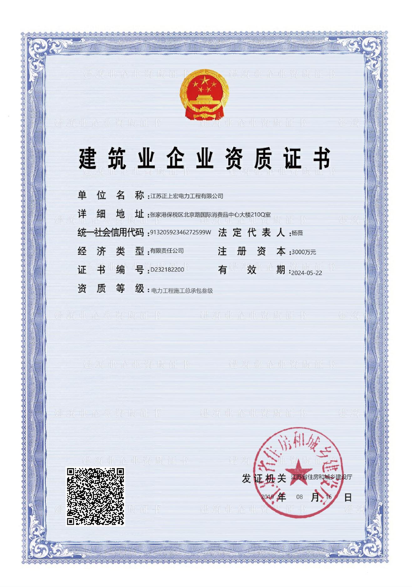 江蘇正上宏電力工程有限公司注冊于在蘇州張家港保稅區。企業(yè)注冊資本金3000萬(wàn)元人民幣。一般經(jīng)營(yíng)項目:機電安裝工程、市政公用工程、電力工程、通信工程施工總承包;建筑機電設備安裝工程施工、消防設施工程施工、道路照明工程施工、電子與智能化工程施工、輸變電工程施工、建筑裝飾裝修工程設計與施工、建筑智能化工程設計與施工、照明工程設計、安防工程設計施工、壓力管道安裝工程、空調工程;配電設備維修保養、建筑機電設備維護保養、智能化系統維修保養;可再生能源開(kāi)發(fā)利用;銷(xiāo)售:電纜、配電箱、配電柜;提供工程設備租賃。